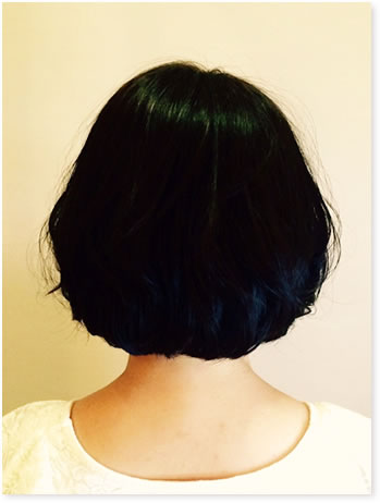 毛先中心のやわらかいかーると、空気感のある動きで、スタイリングしやすくカットしました。 曲線を少し入れたバングもポイントです。
